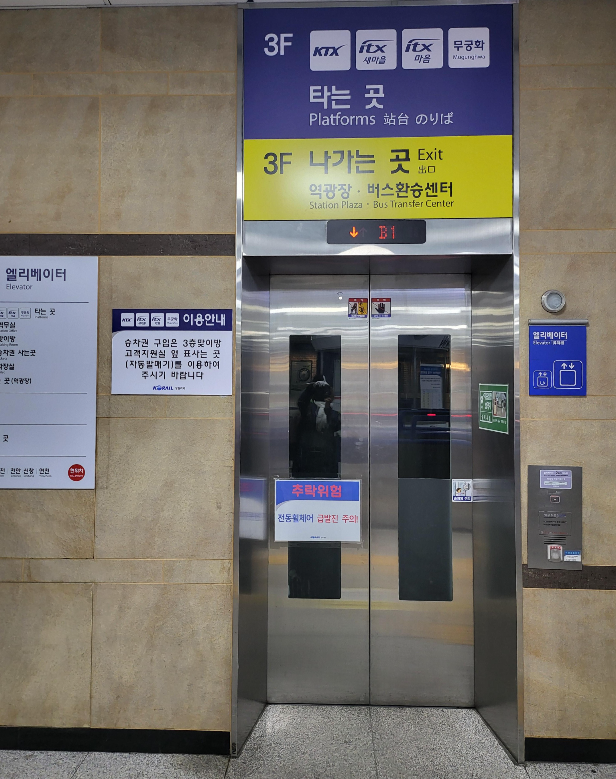 5. 엘리베이터로 3F 내리면 지상, KTX 승강장으로 이동